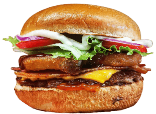 Two all-beef smash burger patties, American cheese & LH Sauce, topped with lettuce, tomato, pickles - Add bacon $2